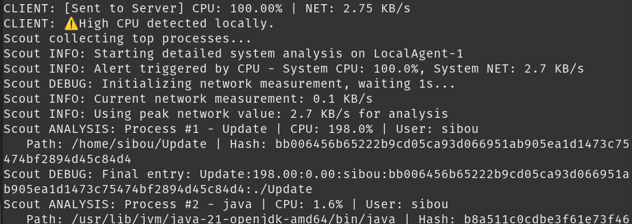 The Logic of “Default Deny”: Security best practices dictate a “Default Deny” posture. We defined a strict set of “Immutable System Processes” (e.g., systemd, bash, java, sshd). Any process consuming >80% CPU that is not on this list is unequivocally treated as a threat.