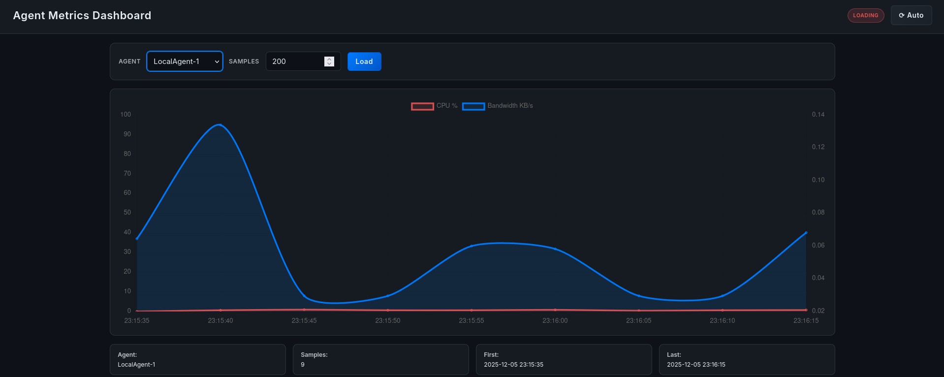 Upon launching the ASC Sentinel Dashboard, the administrator is presented with a global view of the network. The interface allows for real-time selection and monitoring of specific Local Agents.