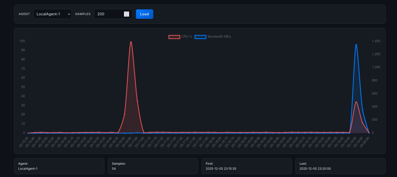 Execution: We ran stress instances on both nodes within a 5-second window.