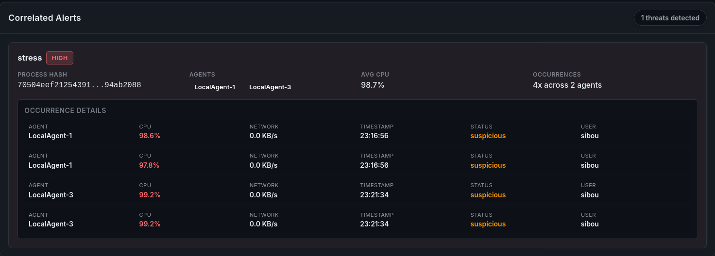 This confirms that while the Agent’s reaction speed is vital, the Forensic Layer provides the deep inspection necessary to catch sophisticated “Masquerading” attacks.
