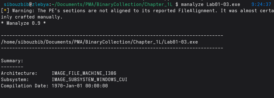 For this lab, and for the rest of the book, I will be using Manalyze for all analysis since most of the tools referenced in this chapter are now outdated.