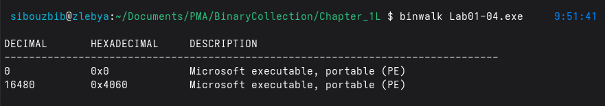 To analyze the resource, I used binwalk, which revealed that the executable contains another PE file embedded inside its resource section. This aligns perfectly with the earlier strings output that hinted at an additional payload bundled within the binary.