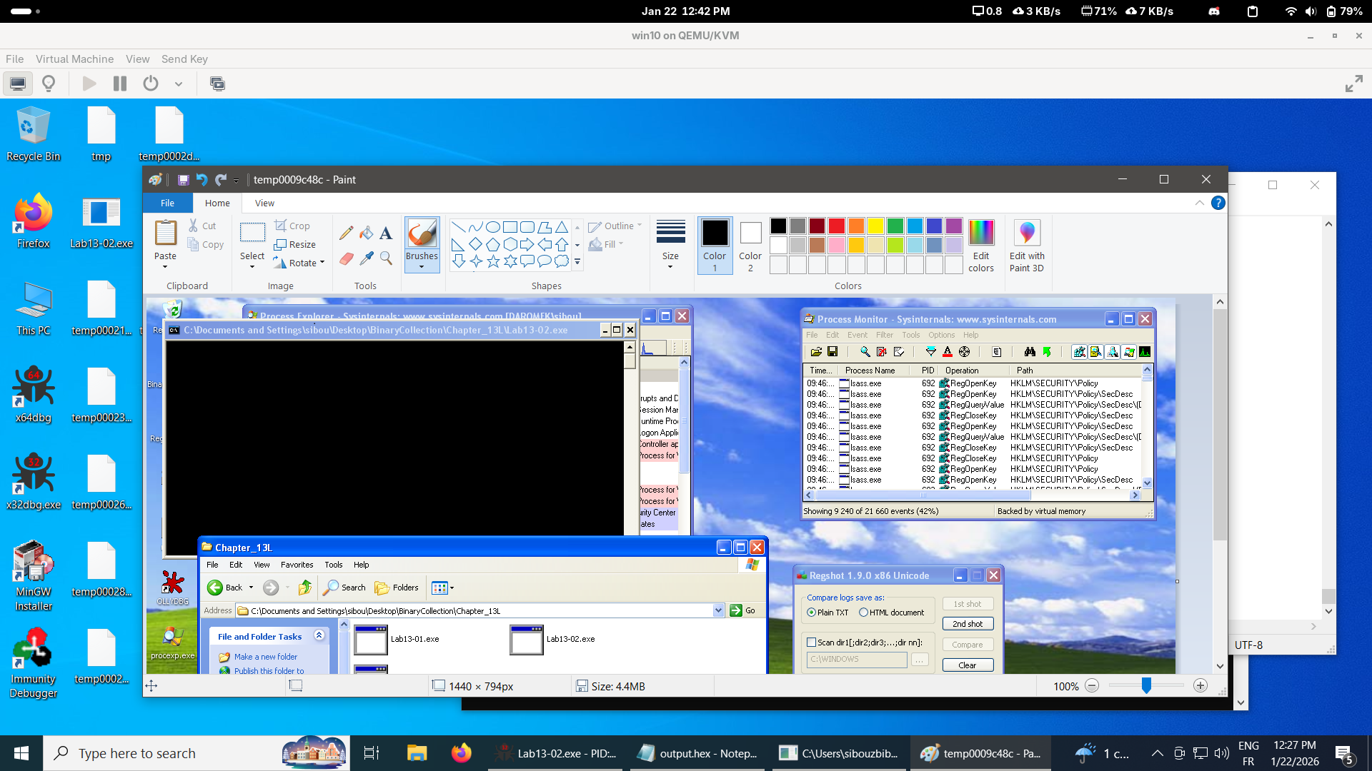 Inspecting these dropped files reveals that they all have the same size (4,467 KB). Combined with the imported APIs, a reasonable assumption is that the malware periodically captures screenshots of the virtual machine’s desktop and saves them to disk.